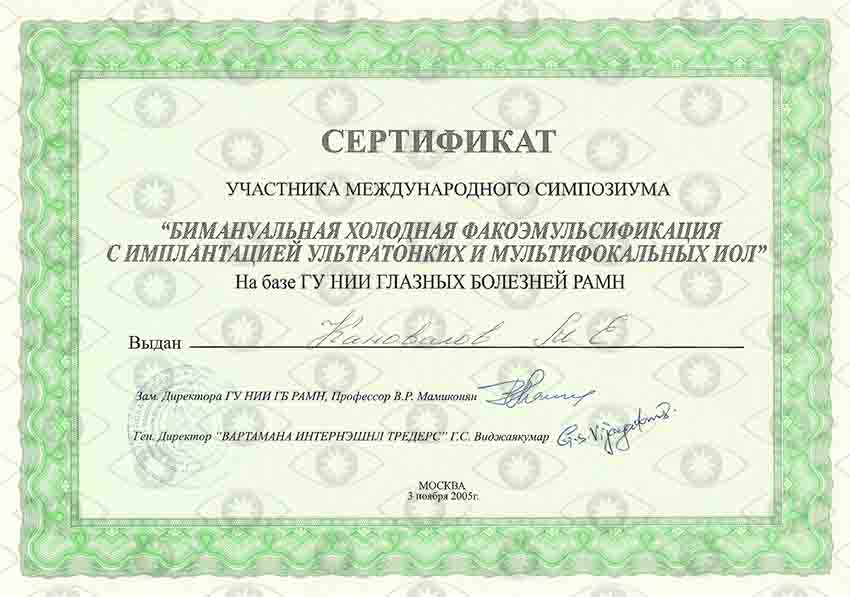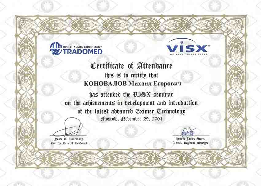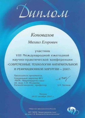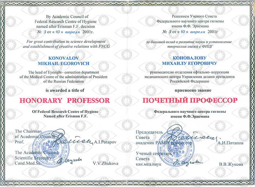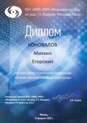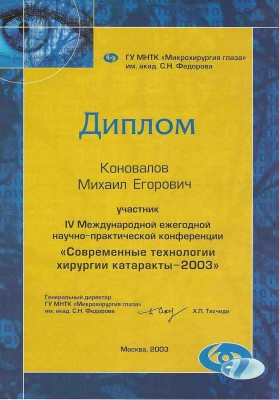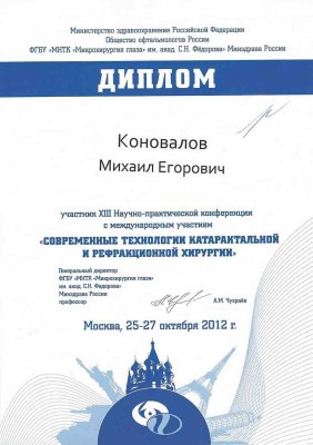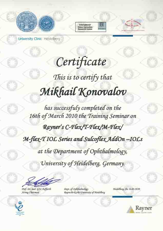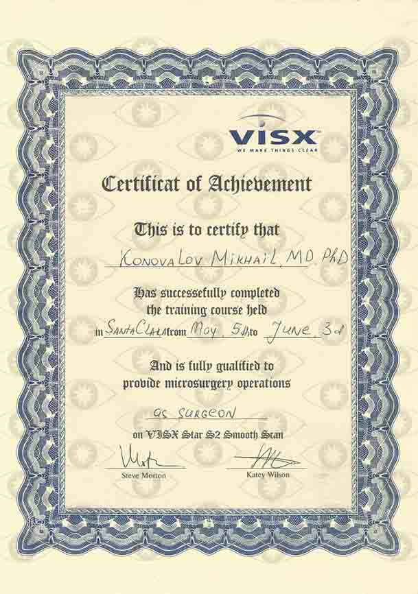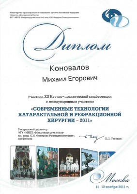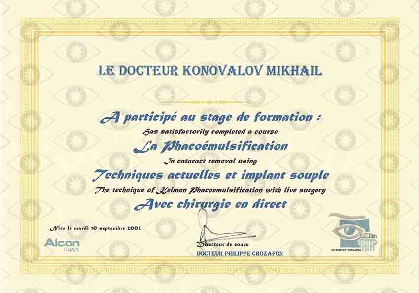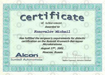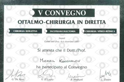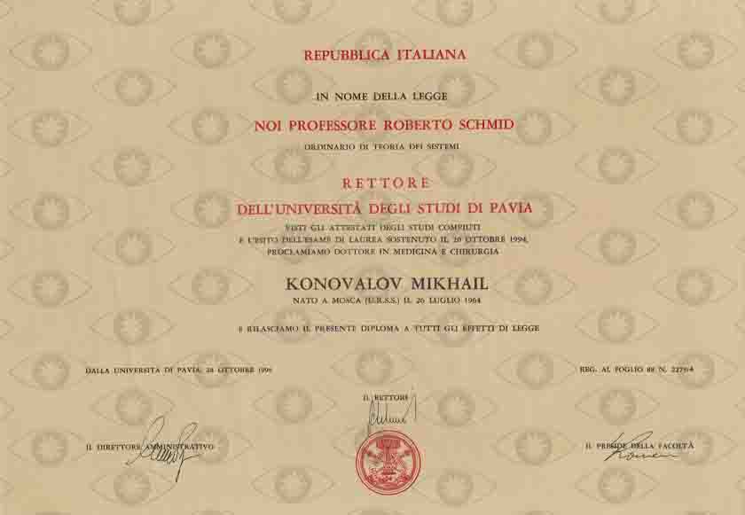 Непростым было это решение еще и потому, что Михаил Егорович в свои 27 лет должен был выполнять обязанности ведущего хирурга частной европейской клиники. Работая в большой государственной клинике – МНТК «Микрохирургия глаза», он всегда имел возможность проконсультировать больного по любому поводу и у любого специалиста, а тут пришлось начинать самостоятельную практику в условиях чужой страны. Надеяться приходилось только на себя. Кроме того, для того, чтобы получить возможность работать в Италии официально, Михаил Коновалов параллельно с работой учился и успешно закончил медицинский факультет государственного университета г. Павиа, одного из старейших и уважаемых в Европе.